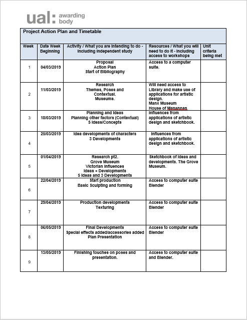 I feel that this project has been a great experience and a stepping stone for me in my skills of character sculpting, rigging, posing and developing my understanding of Blender as well as developing my own style of character and developing it, as this is something I wish to continue to learn about and take with me to university. Although I didn’t achieve the desired outcome in the way I originally planned it in my first ideas, I am still very happy about the overall outcome as what I made was something new for me, and something I really enjoyed doing too. I felt like, with more time and guidance, I could have done a little bit more with the outcome, for example, had more poses for the character, or perhaps had a small animation. But, I have developed my knowledge and skills quite a lot through the process(sculpting, rigging and posing), and it would have been hard for me to go further within the time frame and finish doing a variety of poses etc in that time. I felt that I took a bit too much time with the research and ideas creation despite the fact that these were vital steps. I felt, in the end, I could have done them a bit quicker. I also need to mention that I originally started off with wanting my character to be one exclusively from a Victorian era influence, which I spent time researching. However, after making the character ideas, I chose differently and went with a Viking and Medieval Knight influence instead. I felt that I made the right choice here as I didn’t really have many ideas and thoughts about how I wanted a Victorian character to look, and I had done more hobby work on armoured warriors, than Victorian-fashioned Englishmen. I do feel that because of this experience that I will continue to make new characters as a new hobby and will continue to develop my skills and develop them further at university, to improved these ideas more. I did have a few things that happened to hinder me along the way, these included having difficulty with textures not being properly applied to the model, and the model having extra unnecessary pieces extruding out from the model too, which were a problem to solve. I did deal with these nearer to the end by learning how to manage this aspect of the Blender programme, as this is when they became more of a problem. I do see that this was something I should have done sooner, but I also feel that at the time it was unnecessary. Another point I felt like I should improve on was my skills in making a time management plan, as I personally don’t like making plans and like to ‘go with the flow’ essentially. However, when I did create a plan, it did help me get on with my work and helped me keep up with what I wanted done by the ends of each week. I do feel that I didn’t keep up with making the plans near the end of the project as I felt like it was more of an obstacle to my work than something that would benefit me. I also feel that the way I made my plans, which I made at the starts or ends of each week, was an inadequate way to make them and I need to work on that, as I also feel that because of this my enjoyment of the project decreased each time I realised that I needed to make them. Making a plan is necessary and helpful but not as enjoyable as actually developing the character and using the programme to develop it.