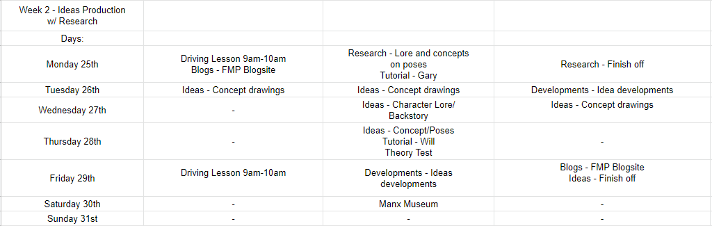 This is when I actually started to do the project. Somethings had to get moved around, such as the ideas, I didn’t spend too much time doing the ideas in this week as I prioritised the research more, but I did make some concepts of what I planned to make based on what I had already researched at that point.
